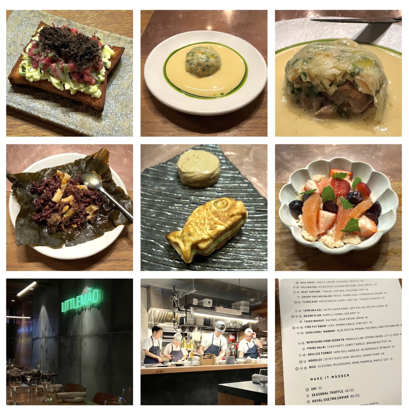 Chez Little Mad dans le quartier Nomad le chef coréen Sol Han mixe ses influences à celles de la cuisine européenne, et propose une expérience assez inédite avec des dressages et préparations réalisées à table par un service adorable. La vue sur la cuisine ouverte permet également d’avoir un œil en coulisses. Le chef a officié chez Ai Fiori (italien étoilé à NYC) et Le Coucou (le restaurant du chef Daniel Rose que l’on aime beaucoup). Little Mad, c’est un style underground et un accueil bienveillant. Scallion pancake facétieux en forme de poisson pour commencer, avant le Mad Toast signature au waygu, caviar et truffe, un claque gustative ! Les couteaux aux morilles, kombu et œuf sont préparés dans une feuille végétale de cuisson vapeur, à table, sauce et mélange réalisés par le serveur qui explique les étapes de la recette. Les saveurs sont puissantes avec un effet terre mer très contrasté. Le chou farci mandoo aux crevettes obsiblue, foie gras et sabayon homard est un pur régal. Le dessert gentiment offert par la maison est un granité aux fraises déstructuré en crumble, très rafraîchissant ! On a adoré l’expérience culinaire de Little Mad et l’accueil délicieux. A découvrir absolument à NYC. Little Mad Site Web