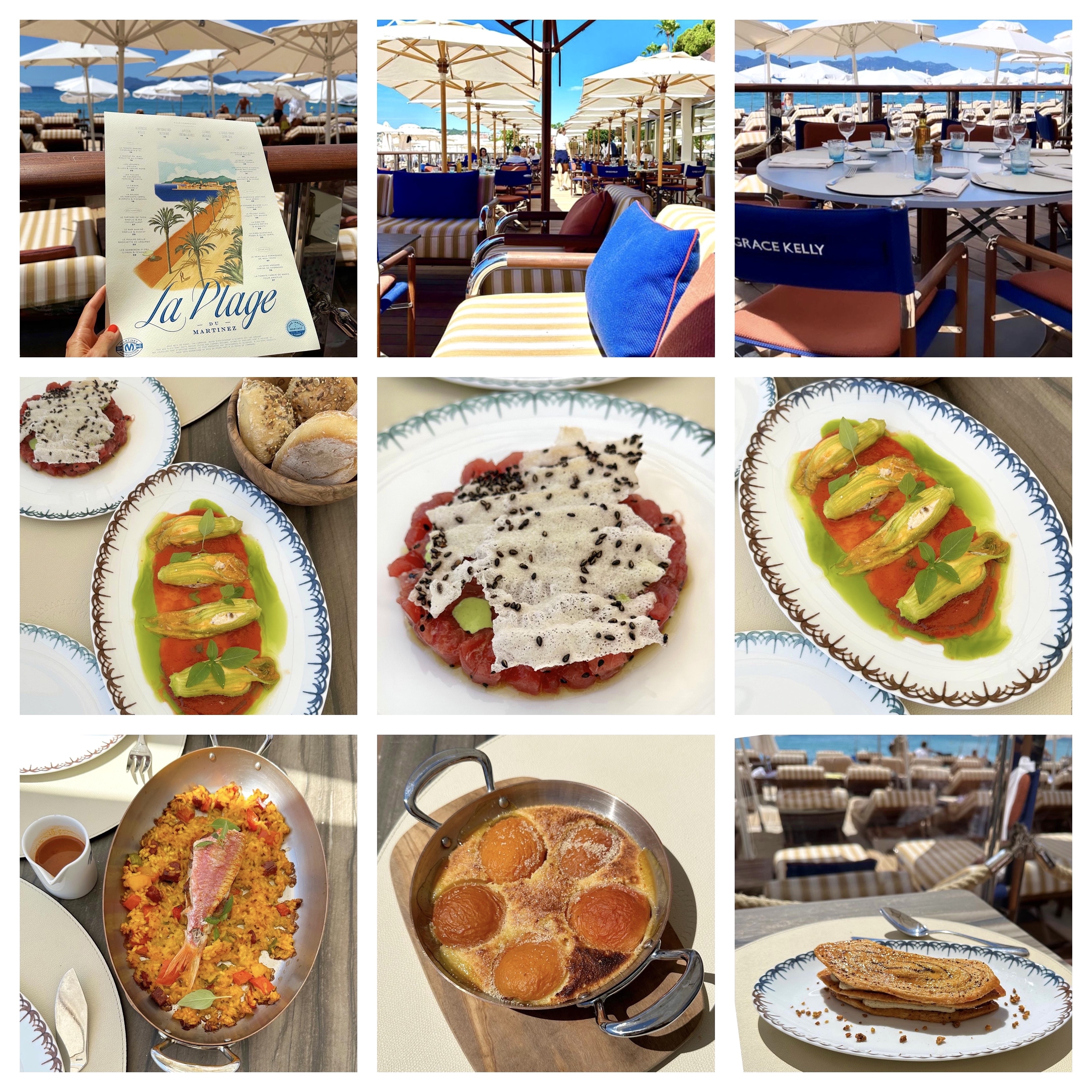 La Plage du Martinez, c’est le rendez-vous pour une cuisine solaire, chic et conviviale, aux saveurs estivales de la Riviera. Une carte qui raconte une histoire à découvrir dans un nouveau design aux nuances terracotta et bleu outre-mer, lignes épurées en boiseries et cuivres dans l’esprit élégant du yachting. Les confortables fauteuils « réalisateur » portent les noms qui ont contribué à la légende glamour de la Croisette et du Martinez. Un décor qui est l’œuvre du designer Remi Teissier avec du mobilier de prestige et un art de la table imaginé avec sens du détail : des éléments choisis ou créés sur-mesure par des artisans d’art. Le cadre élégant et la délicatesse de l’accueil sont une signature « VeryMartinez ».